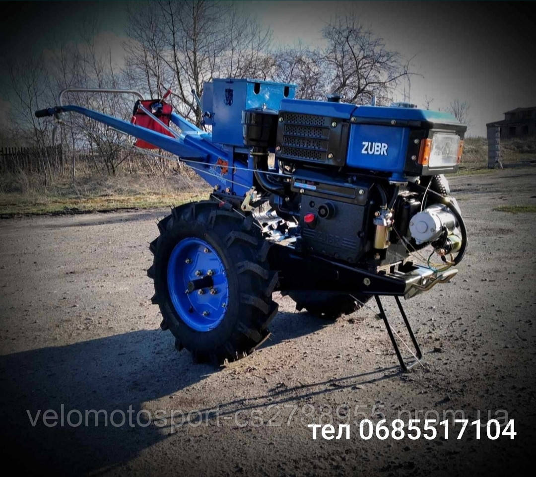 Для замовлень та консультацій звертайтесь за номером телефону:0931009592 ; 0685517104; 0957580652- ZUBR (Зубр)JR-Q79(ел.стартер) - потужний мотоблок з модельного ряду ZUBR. Мотоблок оснащений дизельним двигуном потужністю 9,5 л. с. з встановленим електростартером і акумулятором, "Varta". Розрахований на великі площі обробки, в стандартній комплектації - входить нова активна грунтофреза збільшеного розміру, що перекриває колію коліс. По суті - це триколісний трактор. Галогенова фара дозволить працювати в темний час доби. Великий вибір агрегатуються навісного обладнання. Мотоблок оснащений редуктором нового типу з додатковим валом відбору потужності. Мотоблок ZUBR JR-Q79 (ел.стартер) дозволить виконувати всі необхідні земельні, і не тільки, роботи.Для дизельного мотоблок Zubr JR-Q79E є безліч видів навісного устаткування, яке буде допомагати виконувати різні завдання. Дана модель має задній шестерний вал відбору потужності для підключення на нього грунтофрез, ще вона оснащена переднім ремінним для роторної сінокосарки і вібраційної картоплекопалки. Також можна придбати причіп на якому можна перевозити вантажі до 500 кг. Великі гумові колеса апарату з шевроним малюнком протектора підвищують прохідність. Мотоблок Зубр JR-Q79E(+фреза):